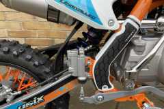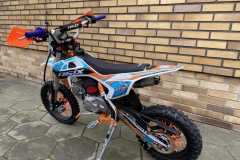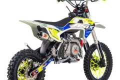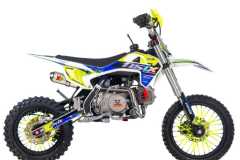 Cross ASIX XB27 w pojemności 110cm3 to pojazd z silnikiem czterosuwowym, odpalany na kopkę lub rozrusznik elektryczny. Pojazd z półautomatyczną, 4-biegową skrzynią biegów przeznaczony dla dzieci od 140cm wzrostu. Cross na kołach 14/12" z amortyzatorami upside-down, licznikiem motogodzin, handbarami, regulacją prędkości oraz holograficzną okleiną