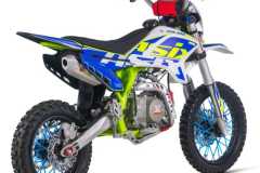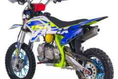 Cross ASIX XB28 w pojemności 125cm3 to pojazd z silnikiem czterosuwowym, odpalany na kopkę lub rozrusznik elektryczny. Pojazd z manualną 4-biegową skrzynią biegów przeznaczony dla dzieci od 140cm wzrostu. Cross na kołach 14/12" z przednią lampą LED, łamanymi klamkami sprzęgła i hamulca, amortyzatorami upside-down, licznikiem motogodzin, handbarami