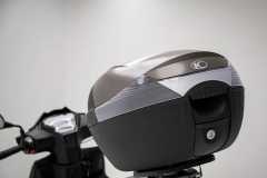 Schowek pod siedzeniem jest jeszcze bardziej przestronny i uporządkowany dzięki wprowadzeniu dwóch wyjmowanych paneli dzielących, znajduje się w nim również w gniazdo 12 V. Z kolei z przodu znajduje się duży schowek po prawej stronie, wygodny haczyk na worek 3 kg oraz gniazdo ładowania USB po lewej stronie. Standardowym wyposażeniem jest również wygodny górny kufer o pojemności 33 l, w tym samym kolorze co nadwozie i doskonale zintegrowany z pojazdem.
