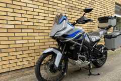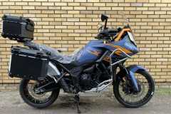 Standardowe wyposażenie obejmuje regulowane zawieszenie Marzocchi, opony Michelin, przednią i tylną kamerę, reflektory przeciwmgielne, bumper, osłonę silnika, grzane manetki, elektrycznie regulowaną szybę, quickshifter działający w górę oraz fabryczne stelaże pod kufry.