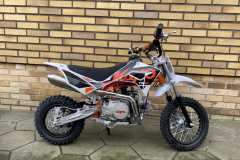 Motocykl napędza jednocylindrowy, czterosuwowy silnik o pojemności 90 cm3, o mocy idealnie przystosowanej dla dziecka. Pit Bike wyposażony został w elektryczny rozrusznik, dzięki czemu do uruchomienia go nie trzeba używać siły. Posiada półautomatyczną skrzynię biegów, która bardzo ułatwia naukę jazdy. Porusza się na stalowych kołach o średnicy 12 cali z przodu oraz 10 cali z tyłu, wyposażonych w wysokiej jakości opony terenowe z wysokim bieżnikiem. Zapewniają one wysoką przyczepność w każdych warunkach, co minimalizuje ryzyko utracenia kontroli nad motocyklem. Idealnie sprawdzi się dla małego rajdera w wieku od 7 do 10 lat, a jazda na nim będzie bezpieczna i przyjemna!