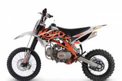 Pitbike Kayo 160 TT został stworzony dla doświadczonych riderów, którzy szukają dużej pojemności, mocy i emocji. Jego wydajny silnik wsparty dużą chłodnicą oleju dostarcza mocnych wrażeń niezależnie od warunków. Terenowe opony, zamontowane na solidnych stalowych felgach, zapewniają świetne prowadzenie. Dzięki hydraulicznym hamulcom tarczowym, poziom bezpieczeństwa jest na wysokim poziomie. Dodatkowe funkcje regulacji umożliwiają dostosowanie pozycji kierowcy, gwarantując komfort i przyjemność z jazdy.
