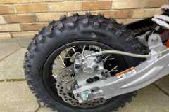 Motocykl porusza się na stalowych kołach o średnicy 12 cali z przodu oraz 10 cali z tyłu, wyposażonych w wysokiej jakości opony terenowe z wysokim bieżnikiem. Zapewniają one wysoką przyczepność w każdych warunkach, co minimalizuje ryzyko utracenia kontroli nad motocyklem przez dziecko. Zawieszenie maszyny nie posiada możliwości regulacji, jednak fabrycznie dostosowane zostało do wagi dziecka, tak, aby zapewnić mu jak najwyższy komfort podczas jazdy. Zawieszenie doskonale tłumi wszelkie dziury i nierówności, co zwiększa stabilność motocykla oraz zmniejsza zmęczenie rąk młodego rajdera podczas jazdy. Dzięki temu może jeździć dłużej, szybciej, i dynamicznie rozwijać swoje umiejętności!
